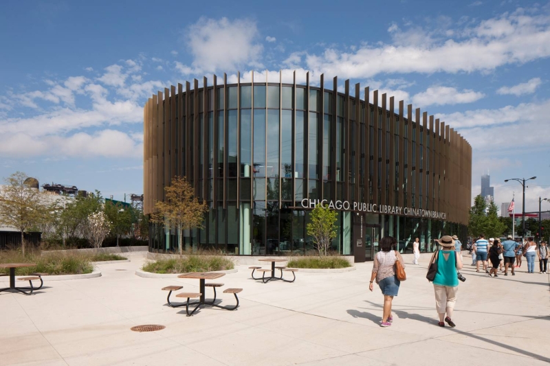 Chicago Halk Kütüphanesi Chinatown Şubesi, toplumsal düzene gönderme yapan, katların arası açık şekilde tasarlanan mimarisiyle özgün yapılara değerli bir örnek oluşturuyor. Yapıda kullanılan malzemelerin köşesiz ve yuvarlak hatlı oluşu, burayı aynı zamanda çocuk dostu bir kütüphane hâline getiriyor.