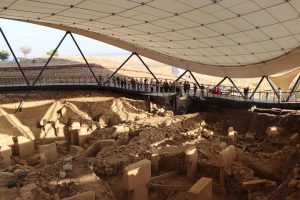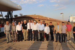 Şanlıurfa Buluşması, kapsamlı bir kent inceleme gezisine sahne oldu. Göbeklitepe arkeolojik alanı, gezinin kuşkusuz en önemli duraklarından biriydi. Bahreyn’de yapılan UNESCO 42. Dünya Miras Komitesi Toplantısında UNESCO Dünya Mirası Listesine alındığı duyurulan, tarih öncesi döneme ait bir arkeolojik alan olan Göbeklitepe, dünya tarihinde kabul görmüş teorileri ters yüz etme kapasitesine sahip; yaklaşık 12 bin yaşında bir kültür mirasına işaret ediyor. Çatı örtüsü bu yılın başında tamamlanarak ziyarete açılan Göbeklitepedeki arkeolojik çalışmalara 1995 yılında başlandı. İlk dönem Neolitik toplulukları için önemli bir toplanma ya da tören merkezi olduğu düşünülen Göbeklitepedeki yapılar, yiyeceğe erişim, sosyal hiyerarşi, işbölümü gibi pek çok konuda yeni soruların sorulmasına yol açtı. 20 merkezin tespit edilip 6’sının gün yüzüne çıkarıldığı Göbeklitepe kazı alanını gezen ÇEKÜL Vakfı ve TKB heyeti çalışmalar hakkında bilgi aldı; Ziyaretçi Merkezindeki sergi alanını dolaştı.