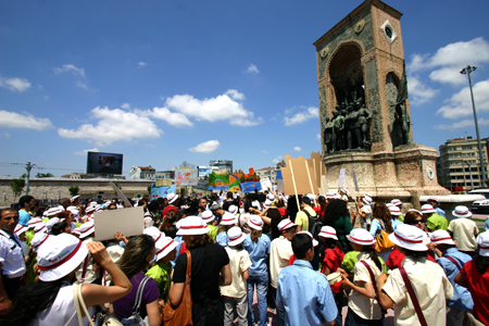 İstanbul Buluşması’nın üçüncü günü, Galatasaray Lisesi ve İstiklal Caddesi’nde yapılacak etkinliklerin hazırlığıyla başladı. Arhan Kayar ve Sabine Buchman’ın destek verdiği atölye çalışmasında, “Kültür Yürüyüşü”nde taşınacak kent panoları ile doğal ve kültürel mirasın yaşatılmasıyla ilgili mesajlar içeren afişler ve dövizler hazırlandı.