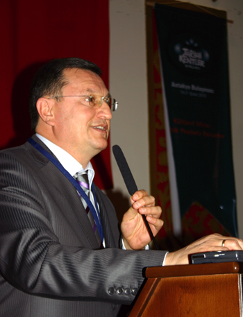'Burada kendini gerçek barışa adamışların toplantısı yapılıyor. Ortak paydada buluşmak için bir araya geldiğimiz Antakya’da herkesi bir arada görmek doğru sonuçlar alacağımızın işaretidir. Nereden kaynak bulacağını soran küçük kentlere önce ortak akıl oluşturmak gerektiğini söylüyorum. Valiler nasıl il ölçeğinde destek veriyorsa, artık kaymakamlarımız da bu toplantılara katılmaya başlayarak ilçe ölçeğinde kentlere destek verecek. TKB ile yola çıkarken, kentlerin, mahallelerin planını yapacağız sözünü vermiştik. Bugün Asım Güzelbey, Doğu Akdeniz’i de içine alan bir havza haritası gösterdi. Artık her ölçekte dayanışma sözü veriyoruz. Önce ‘bu ülke bizim; gidecek başka yerimiz yok’ diyebilmeliyiz. Eğitimci arkadaşlarımızın da kentlerde kurulan üniversiteleri ve öğrencileri iyi değerlendirmesi gerekiyor.