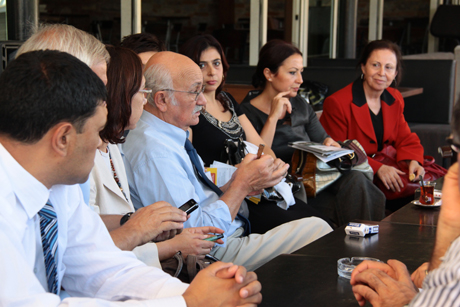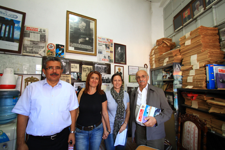 (Soldan sağa) Belediye Başkan Yrd. Ahmet Gümüş, Aydın Mimarlar Odası Başkanı Nüket Akgönül Yoğurtçu, Eski Eserleri Sevenler Derneği Başkanı Havva Çetintürk ve Prof. Dr. Metin Sözen derneğin bürosunda..