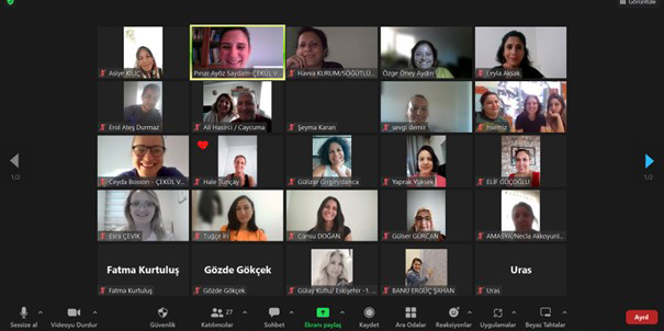 Kılavuzlar öğretmenlerle birlikte incelendi; kılavuzdan seçilen etkinliklerin bazıları sınıf içi etkinliğe dair fikir vermesi amacıyla öğretmenlerle birlikte uygulandı. Yıllık takvim, iletişim bilgileri ve süreç boyunca kullanılacak eğitim teknolojileri hakkında bilgi verildikten sonra soru cevap bölümüyle toplantı tamamlandı.