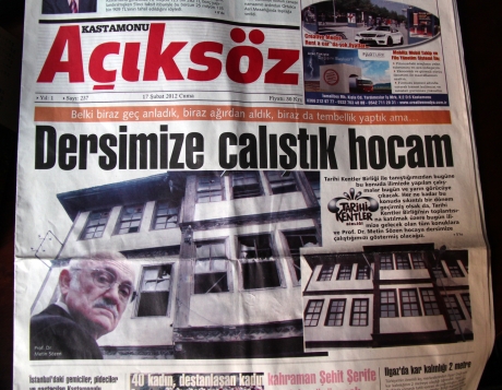 Bu cümleyle başlıyor Kastamonu Açıksöz gazetesinin manşeti; ve TKB Batı Karadeniz Bölge Toplantısı'nın, yıllar sonra Kastamonu'ya gelecek olan Prof. Dr. Metin Sözen'in haberini veriyor okuyucusuna. Kentte 2000 yılında başlayan koruma hareketi, değişen yönetimler nedeniyle süreklilik kazanamayarak yavaşlamıştı. Geçen hafta sonu yapılan bölge toplantısıyla tüm kesimler bir araya getirildi. Kastamonu başta olmak üzere Karabük, Zonguldak, Sinop ve Bartın ile bu kentlerin TKB üyesi ilçe ve belde yöneticileri tek tek söz alarak çalışmalarını paylaştı. Batı Karadeniz bu toplantıyla "silkindi", yeni hedefler belirledi.
