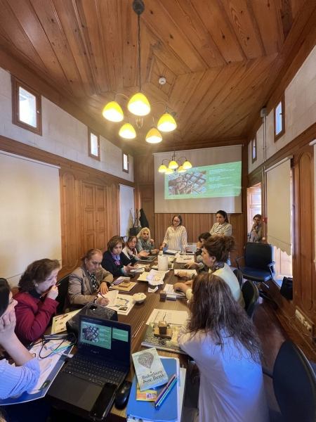 Geçen haftalarda 3 gün süren çevrimiçi eğitmen eğitiminde katılan Gaziantep ÇEKÜL Eğitim Gönüllüleri, 2 Mayıs’ta Gaziantep Metin Sözen Eğitim ve Kültür Merkezinde ÇEKÜL Bilgi Ağacı uzmanlarıyla biraraya gelerek detaylı bilgi aldı. Tarihi Bey Mahallesinde bulunan Metin Sözen Eğitim ve Kültür Merkezinin restorasyon ve işlevlendirme sürecini gönüllülerle paylaşan Gaziantep ÇEKÜL Temsilcisi Zafer Okuducu, kentin geleneksel konut mimarisi hakkında da bilgiler verdi. Buluşmada, Kentler Çocuklarındır Eğitim Kılavuzu detaylarıyla incelendi ve gönüllü eğitimcilere teslim edildi.