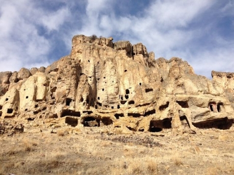 * Aynı vadinin devamında Isbıdın (Bağpınar) kaya yerleşimi Turan kadar kalabalık olmasa da cephede onlarca yerleşim görülmekte.