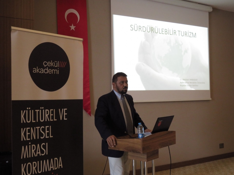 Kuşadası eğitiminin son sunumu Adnan Menderes Üniversitesi Öğretim Üyesi Dr. Abdullah Tanrısevdi yaptı. Sürdürülebilir turizm sürecinin hedefleri, yönetimi, turizmin gelişimindeki etkilerini örneklerle anlattı.