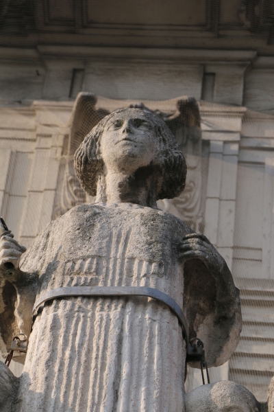 Yapının denize bakan cephesinde bulunan teras bölünün sağ ve sol kenarlarında batıda kadın, doğuda erkek olmak üzere 2 adet insan figürü yer alır. Her 2 figürün de sağ ve sol tarafında, dizlerinin üzerine çökmüş 4 çocuk figürü, çelenklere sarılmış bir şekilde konumlandırılmıştır. Anıtsal heykellerde kullanılan çelenkler bereketi sembolize eder. Görünüşlerinden yola çıkarak, heykellerden birinin ziraatı diğerininse ticareti simgelediğini söyleyebiliriz. Denize karşı konumlandırılmış heykellerin, dayanıklı ve güçlü duruşları bir bakıma yapıyı koruyan muhafızları da akla getirir. Yapının iç mekân bezeme ögelerine bakıldığında ise kalem işlerine rastlarız. Günümüzde ortaya çıkarılmayı bekleyen kalem işlerinde, bir takım meander ve bitki motiflerini de görmek, kısmen mümkün. Bununla birlikte yapının merdiven korkuluklarında ardışık bir şekilde yer alan pirinç plaklar, stilize edilmiş başaklardan oluşur. Bu stilize edilmiş başaklar, sadece merdiven korkuluklarında değil, asansör içindeki vitray pencerelerde ve yapıya daha sonradan eklenen kapıda da yer alır. 1970 yılında Sadi Çalık tarafından yapılan kapı, banka binasının işlevsel kompozisyonuyla bir bütün oluşturur ve merkezde başakların yer aldığı, çevresinde ışık hüzmelerini anımsatan çizgisel bir bütünlük bulunan kapının yapıyla olan bağlantısını destekler.