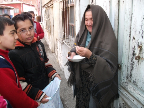 denilirdi. Hemen arkasından da eklenirdi: “Yağdan, bulgurdan, kıymadan ne verirseniz.” Şayet ev sahibi kapıyı açmakta gecikirse, daha gür bir sesle: