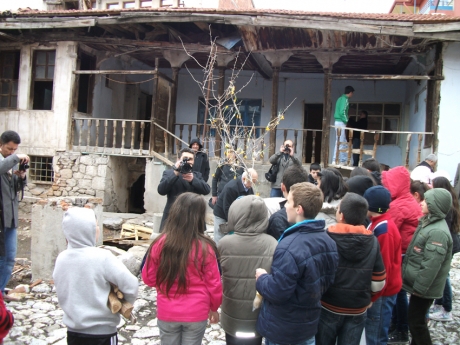 Şenlikten bir gün önce, mahalle sakini dostlarımla önceden belirlediğimiz, çocukların kapısını çalacağı 10 evi bilgilendirdik ve çiğdem aşı için gerekli malzemeleri bu evlere dağıttık. Amacımız, bu geleneği olabildiğince otantik bir ortamda gerçekleştirmekti. Dolayısıyla kullanılacak kap-kacakla birlikte aktivasyonun yapılacağı sokak ve çiğdem aşının yedirileceği ev de otantik olmalıydı. Bu amaçla yer sofrasını, minderleri, tahta kaşıkları, bulgur kazanını, bakır tepsiyi tedarik etmekte zorlanmadık. Ziyaret edilecek evler, benim de çocukluğumun geçtiği ve kısmen de olsa hâlâ eski dokusunu koruyabilen Yavruturna Mahallesi’ndeki sokağımızdaydı. Asıl sorun çiğdem aşının yedirileceği mekândı. Mahallemizde buna uygun tek ev vardı ve o da hurdacılar tarafından depo olarak kullanılıyordu. Kanatlı kapılı, taş kaldırımlı geniş avlulu, haymalıklı, tandırlı, mahzenli ve Çorum’da sadece birkaç örneği kalan önü açık sofalı tek katlı bu evi 2011 yılında tesadüfen keşfetmiş, ancak rölövesini almak bir yana fotoğraflarını bile çekememiştik. Hurdacıların evi boşalttığı haberini duyunca çok sevindim. “Uzun Ali” lakaplı eski demirci ustasına ait 110 yıllık bu evi hem belgeleme fırsatı yakalamış, hem de aktivasyonumuz için en uygun mekânı bulmuş olduk.