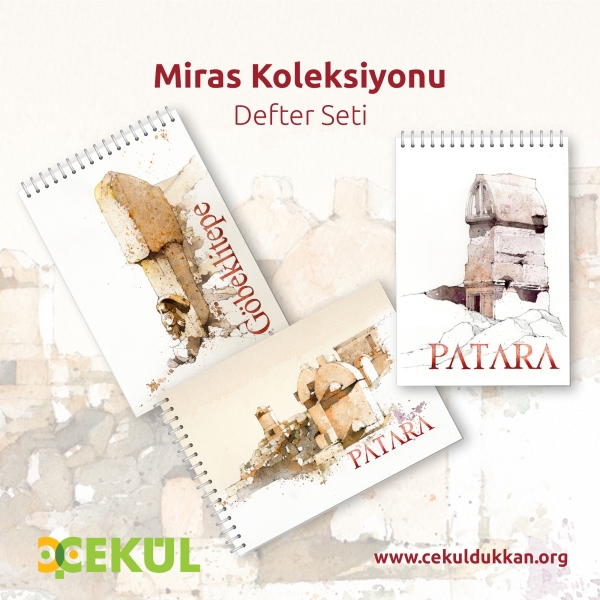 ÇEKÜL Dükkan Miras Koleksiyonu çeşitleniyor. UNESCO Dünya Mirası Listesinde bulunan Göbeklitepe ile tarihi ve arkeolojik değerinin yanı sıra, Caretta Caretteların yumurtalarını bırakıp yavruladıkları ender sahillerden birine de kıyısı olan Patara Antik Kenti, Y. Metin Keskin’in sulu boya desenleriyle ÇEKÜL Dükkân Miras Koleksiyonunun parçası olan defterlere işlendi.